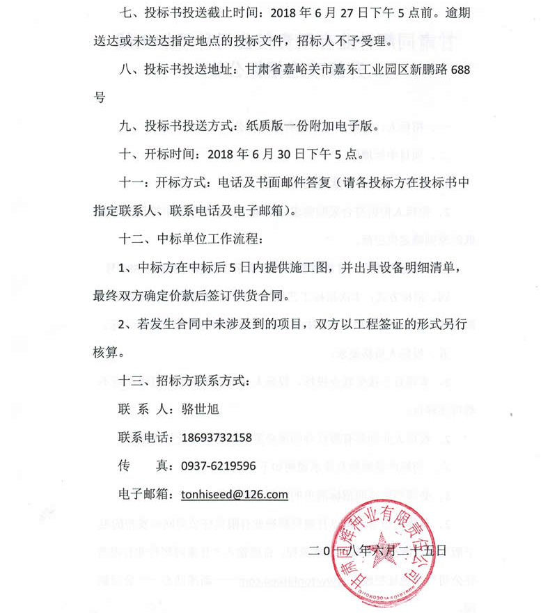 七、投標(biāo)書投送截止時間:2018年6月27日下午5點前。逾期送達(dá)或未送達(dá)指定地點的投標(biāo)文件,招標(biāo)人不予受理。
